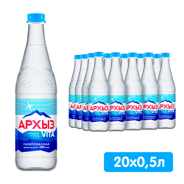 Минеральная вода «Архыз» газированная 0,5 в красивой стеклянной бутылке станет прекрасным сопровождением любого торжественного мероприятия.