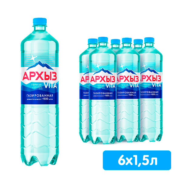 Минеральная газированная вода «Архыз» 1,5 литра – это удобный объём и для домашнего употребления, и для использования на даче или выездов на природу.
