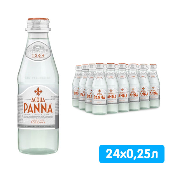Блестящая и кристально чистая негазированная минеральная вода из Тосканы (Флоренция), приятно мягкая и сбалансированная, с тонизирующим и стойким мягким вкусом. Acqua Panna обладает умеренным содержанием солей и хорошо сбалансированным химическим составом, который отличается присутствием почти всех основных химических элементов, таких как кальций, магний, кремний, в незначительных количествах. Ее тонкий вкус позволяет использовать ее и для дегустаций вин и для сопровождения гастрономических трапез. Особо отмечена Международной Ассоциацией Сомелье (ASI).