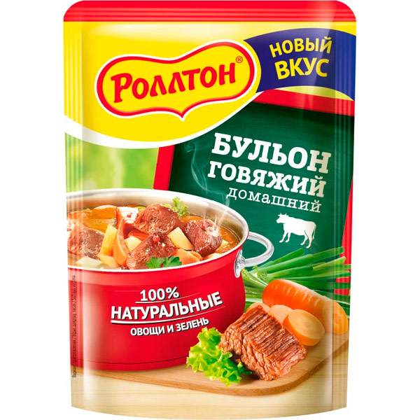 Бульон Роллтон домашний говяжий — продукт, который является универсальной основой для приготовления широкого спектра блюд. Большой объем упаковки позволит использовать его продолжительное время и разнообразить ежедневное меню. Чтобы получить питательный бульон, достаточно одной чайной ложки сухой приправы, которую растворяем в 0,5 литра кипятка, а затем тщательно перемешиваем и оставляем немного настояться. При приготовлении супов концентрат рекомендуется добавлять в почти готовое блюдо в той же пропорции. Кроме того, продукт обогатит вкус гарниров, соусов и подлив, а также может быть использован как пикантная приправа для мясных блюд.