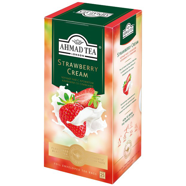 Сочетание клубники со сливками — классический десертный дуэт, в котором главную ноту играет клубника в томном сливочном соусе. В этом купаже вкус черного цейлонского чая дополнен сладкими ванильными нотами.Заваривать 3-5 минут, температура воды 100С. Горячий напиток очарует характерным терпким, слегка сладковатым вкусом, обладает полезными свойствами для организма человека, содержит танин, флавоноиды, микроэлементы, повышает работоспособность. Быстро заваривается. Для усиления вкуса добавьте в чашку кусочек лимона, апельсина, молоко или сливки.