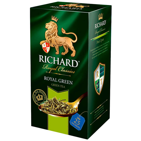 Richard Royal Green - зеленый байховый китайский чай в пакетиках. Изумрудные чайные листья, столь почитаемые за мягкий сбалансированный вкус, восстановят внутреннюю гармонию и придадут сил.