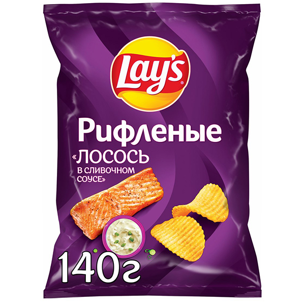 Чипсы Lays рифленые лосось в сливочном соусе, 140 гр. с эффектным внешним видом и плотной хрустящей структурой понравятся и взрослым, и даже детям. Благодаря сладковато-острому вкусу отлично сочетаются как со слабоалкогольными напитками, так и горячим чаем, кофе или какао. Такое сочетание заинтересует любителей новых вкусовых ощущений. Подавать продукт лучше в стеклянной посуде, чтобы получить удовольствие. В том числе и от внешнего вида. Его можно предложить гостям при просмотре фильма или спортивного мероприятия. С чипсами так приятно поддерживать любимую команду. Они исчезнут очень быстро, поэтому лучше держать про запас еще одну упаковку. Изделие подходит для быстрого перекуса, поэтому пачку можно взять с собой в дорогу или на прогулку. Производятся из отборного картофеля с добавлением букета специй. Продаются в пластиковом пакете, сохраняющем вкусовые и потребительские свойства. Он не допускает попадания влаги внутрь и повреждения целостности продукта.