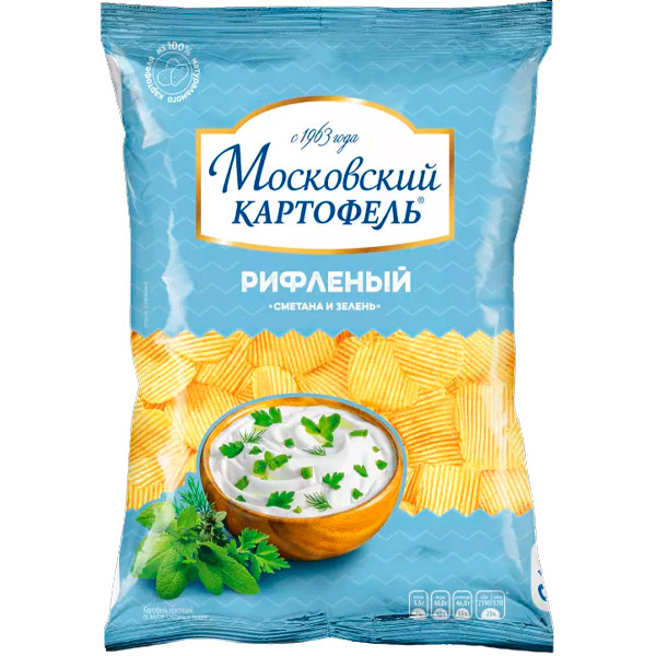 Чипсы Московский картофель рифленые со вкусом сметаны и зелени 60 гр.