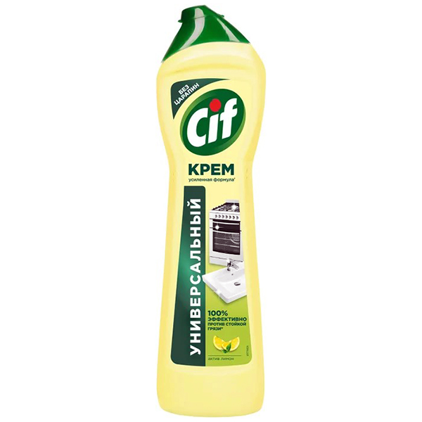 Чистящее средство "Сиф Актив Лимон" со специальными микрогранулами- эксперт в области эффективного очищения с заботой о поверхности. Мощная формула густого крема "Сиф" справится даже пригоревшим жиром, известковым налетом и самыми стойкими загрязнениями на кухне, в ванной и по всему дома. Упаковка: пластиковая бутылка с зеленой крышкой.