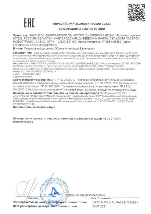 «Дивеевская» – вода с уникальным минеральным составом. По мнению экспертов Нижегородского центра стандартизации, метрологии и сертификации, природная питьевая вода «Дивеевская» по своему химическому составу является одной из лучших вод, представленных на рынке России.