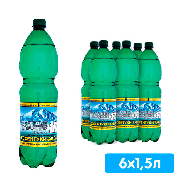 "Курортный Источник-17" добывается с глубины 1510м скв-47 Нагутского месторождения. Минерализация: 9,2-13,0. Не имеет аналогов по вкусовым качествам и целебному воздействию. Вода скважины №47 отвечает требованиям нормативных документов и отличается стабильным химическим составом, что подтверждается постоянным контролем за качеством воды. ТУ 9185-002-50243825-03, знак сертификации АИ-23 Показания к применению: хронические гастриты с нормальной и пониженной секреторной функцией желудка, хронические колиты и энтероколиты, хронические заболевания печени и желчевыводящих путей, хронические панкреатиты, болезни обмена веществ: сахарный диабет, мочекислый диатез, ожирение, фосфатурия, оксалурия.