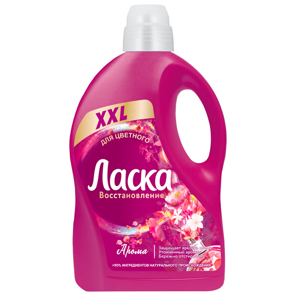 Гель для стирки Ласка Арома-уход, жидкое средство для стирки 3,85л с утонченным ароматом, которое специально разработано для активного ухода за Вашей одеждой и поддержания первозданной красоты. Защищает яркость цвета, сохраняет прочность ткани.