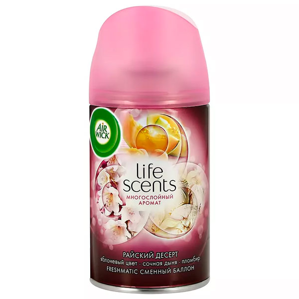 Сменный баллон AirWick для автоматического аэрозольного освежителя воздуха Life Scents Райский десерт 250 мл. Технология многослойного аромата, ощущение которого меняется в пространстве и во времени!