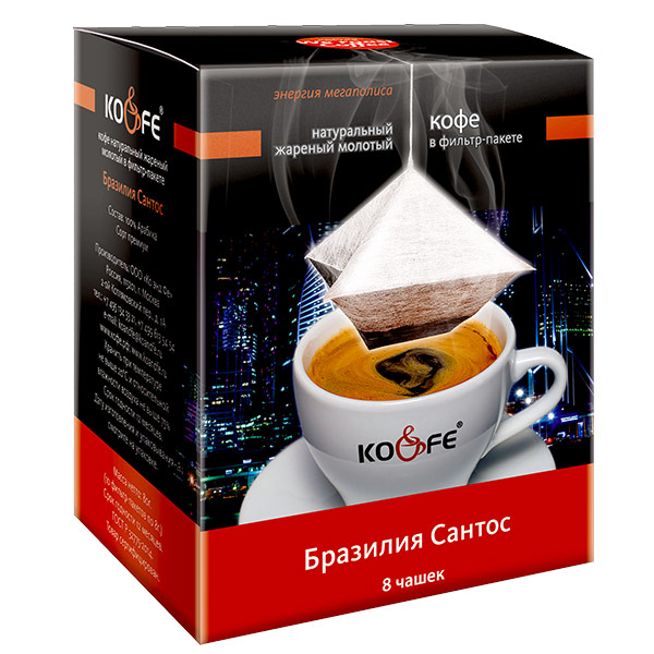 В каждом фильтр-пакете (саше, 8 гр.) Бразилия Сантос содержится порция бодрящего и ароматного плантационного кофе. Для заваривания не нужны специальные приспособления – достаточно поместить фильтр-пакет в чашку и залить кипячёной водой. Форма и материал пакета разработаны с учётом всех особенностей заваривания кофе. Насыщенный, гармоничный и глубокий вкус плантационной арабики – и никакой кофейной гущи.