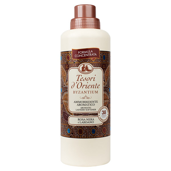 Tesori d’Oriente Византия принадлежит к группе восточных ароматов. Роскошный, сказочный аромат пробуждает грезы о древнем городе Византии. Черная роза – редчайшая и самая загадочная разновидность этого цветка, сливаясь с теплыми нотами лабданума, создает сверкающий, словно драгоценная византийская мозаика, шлейф аромата за вами. Консистенция кондиционера для белья подобрана оптимально для удобства добавления в отсек стиральной машинки. В составе использована инновационная технология капсулированного аромата, микро капсулы раскрываются постепенно: после стирки, при глажении, прикосновении, поэтому лёгкий аромат ощущается длительностью до двух недель.