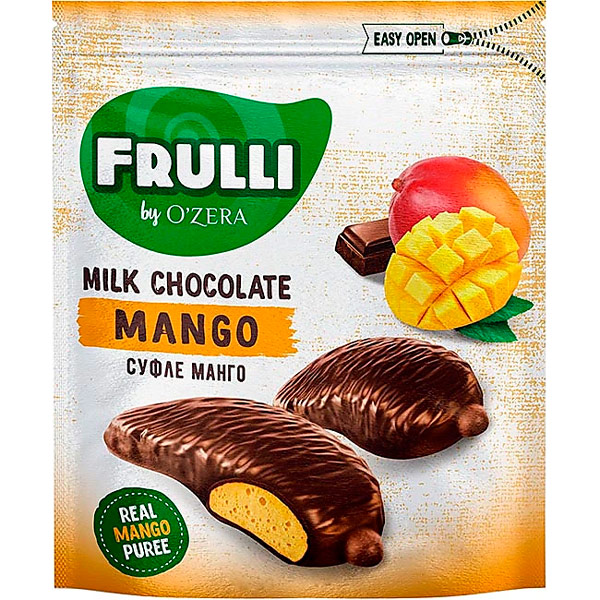 Корпус конфет из настоящего молочного шоколада O'Zera Extra milk, в его составе какао из отборных какао-бобов и цельное сухое молоко. Суфле приготовлено на основе пюре манго и сока, что делает его вкус максимально натуральным, насыщенным и узнаваемым.