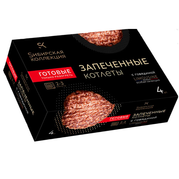 Запеченные котлеты Limousine марки «Сибирская коллекция» выручат вас, если на приготовление еды совсем не остается времени. Просто разогрейте их в микроволновой печи или слегка обжарьте на сковороде и можете подавать готовое блюдо на стол. Ароматные сочные котлеты с говядиной будут прекрасно сочетаться с любым гарниром. Вкусный и сытный ужин для всей семьи за считанные минуты!
