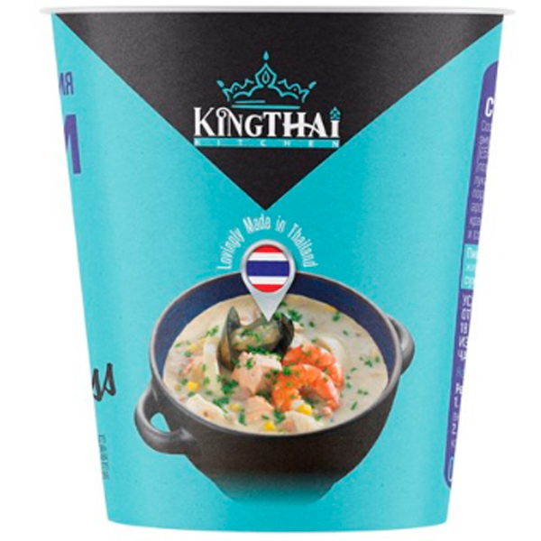 Морское ассорти, обжаренное с луком и болгарским перцем, пюрированное с добавлением сливок и краба. Залив в стакан кипяток и подождав пару минут, можно получить порцию ароматного обеда в азиатском стиле.