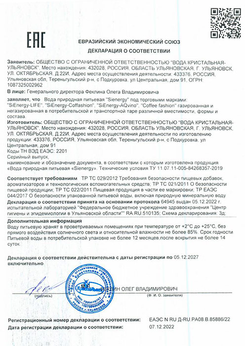 Вода в упаковке bag-in-box – новинка в линейке SiEnergy. Внутри коробки находится специальный «полиэтилен низкой плотности» (low-density polyethylene), который не только обеспечивает герметичность, но и не вступает в реакцию с водой. Это значит, что у воды в такой упаковке будет более тонкий вкус – при полном соответствии санитарным стандартам.