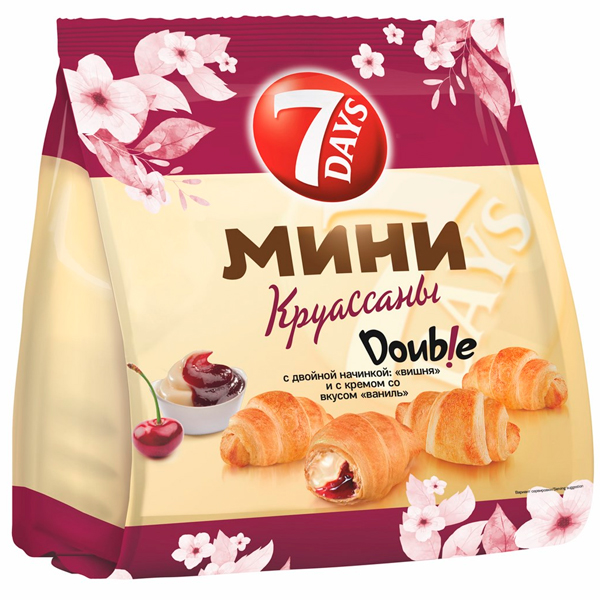 Тесто: мука пшеничная хлебопекарная высшего сорта, вода питьевая, маргарин (пальмовое масло, вода питьевая, соль поваренная пищевая, эмульгатор (моно- и диглицериды жирных кислот), регулятор кислотности (лимонная кислота), консервант (сорбат калия 0,1%)), сахар, стабилизатор (моно- и диглицериды жирных кислот), дрожжи хлебопекарные прессованные, соль поваренная пищевая, ароматизатор, молокосодержащий продукт (молочный белок, стабилизатор (ксантановая камедь), эмульгатор (рапсовый лецитин), регулятор кислотности (лимонная кислота)), консервант (пропионат кальция 0,1%). Начинки с ванильным вкусом 20%: сахар, пальмовое масло, вода питьевая, молоко сухое обезжиренное, спирт этиловый ректификованный из пищевого сырья "Люкс" крепость 96,3% об., порошок яичного желтка, эмульгатор (эфиры полиглицерина и жирных кислот), стабилизатор (камедь целлюлозы), регуляторы кислотности (дигидропирофосфат натрия, орто-фосфорная кислота), ароматизатор, консервант (сорбат калия 0,1%), лактоза. Начинка с вишневым вкусом 14%: глюкозно-фруктозный сироп, вишня 30%, сахар, вода питьевая, желирующий агент (пектин), регулятор кислотности (лимонная кислота), ароматизатор, консервант (сорбат калия 0,1%).