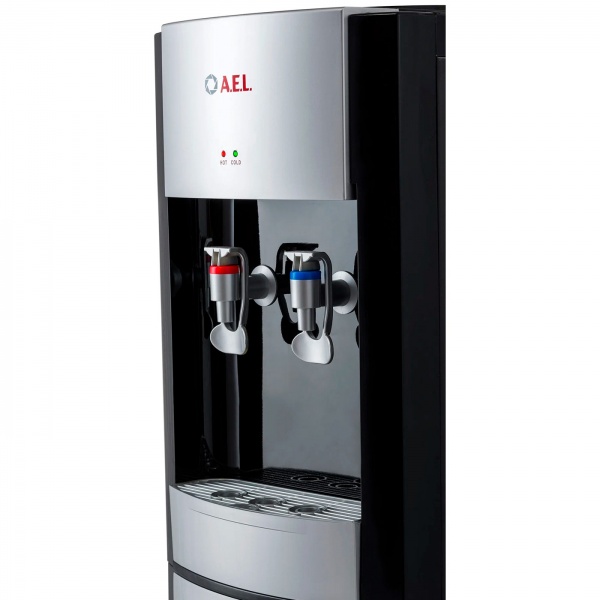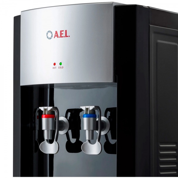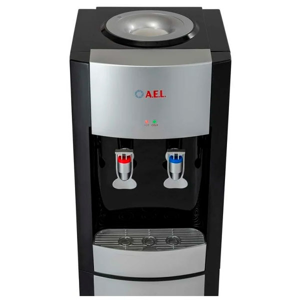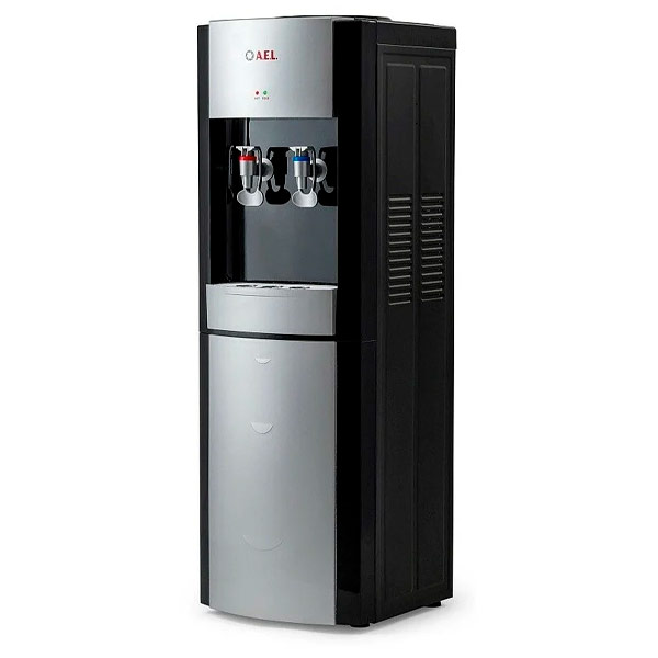 Представлем бюджетный кулер с верхней загрузкой электронного охлаждения. Краники нажим чашкой с внутренней резьбой. Цвет черный с серебряными вставками. Боковые стенки выполнены из металла, окрашенные в черный цвет.