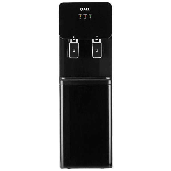 Напольный кулер с электронным охлаждением, нагревом и шкафчиком для продуктов. Гладкая черная лицевая панель, удобные краны "нажим чашкой" и малые габариты аппарата эргономично впишутся в Ваш офис. Цвет черный глянец.