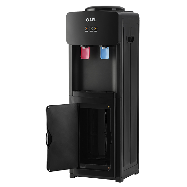 Кулер для воды LD-AEL-86с черный с электронным охлаждением с пластиковыми боковыми панелями. Корпус черного цвета, шкафчик, высота 795 мм.