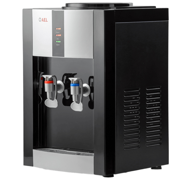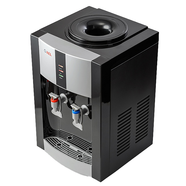 Настольный кулер с компрессорной системой охлаждения черного цвета с серебряными вставками. Отличается высокой производительностью (нагревает до 5 л и охлаждает до 2 л воды в час). Охлаждение и нагрев воды можно отключить с помощью тумблеров на задней панели кулера.