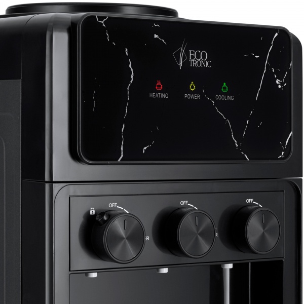У кулера Ecotronic K25-LCE black Marble три температурных режима: «горячий», «холодный» и «комнатной температуры». Выдача воды производится поворотным механизмом.