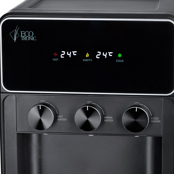 У кулера Ecotronic K42-LXEM black три температурных режима: «горячий», «холодный» и «комнатной температуры». Выдача воды производится поворотным механизмом.