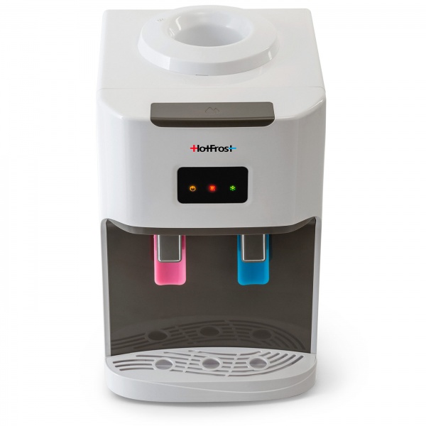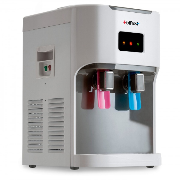 Кулер для воды настольный HotFrost D115. Компрессорное охлаждение (6-8 градусов). Цвет - белый с вставкой цвета "мокрый асфальт". Краны - нажим кружкой. Два крана подачи воды: горячая и холодная. Мощность нагрева 650 Ватт позволяет получить до 5.5 л/час. Компрессорное охлаждение этого аппарата производит до 2 л/час. На передней панели есть индикаторы нагрева и охлаждения. Выключатели для горячей и холодной воды расположены на боковой панели. За счет элегантного дизайна данная модель кулера отлично впишется в любой интерьер.
