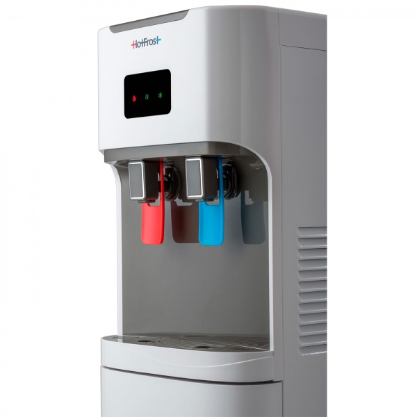 Изюминкой диспенсера являются аккуратные краники типа «нажим кружкой», они очень эргономичны и удобны тем, что для набора воды требуется только одна свободная рука (в которой находится чашка). Такие краны являются наиболее популярными по результатам опроса потребителей.