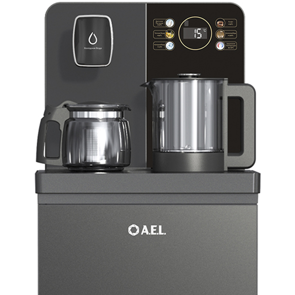 Чайный столик серого цвета TB83a-LD с электронным охлаждением. Нижняя загрузка бутыли. Управление с помощью сенсорной панели управления и сенсорных кнопок на столешнице. Шесть режимов нагрева воды, маркированные температурой: 45°С для детской молочной смеси, теплая вода 60°С, холодная вода 15°С, 90°С для кофе, 100°С кипяток, и функция поддержания температуры 40°-90°С. Уникальная система залива воды непосредственно в чайник снизу через клапан в столешнице. Функция подогрева. Чайники объемом 1л, Размер в собранном виде 370 x 340 x 1125мм. Высота до чайников 88,5см.Размер электрического чайника: D 14см, высота17,2см. Размер стеклянного чайника: D 12,5см, высота 13см.