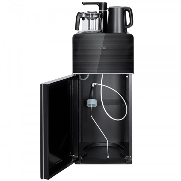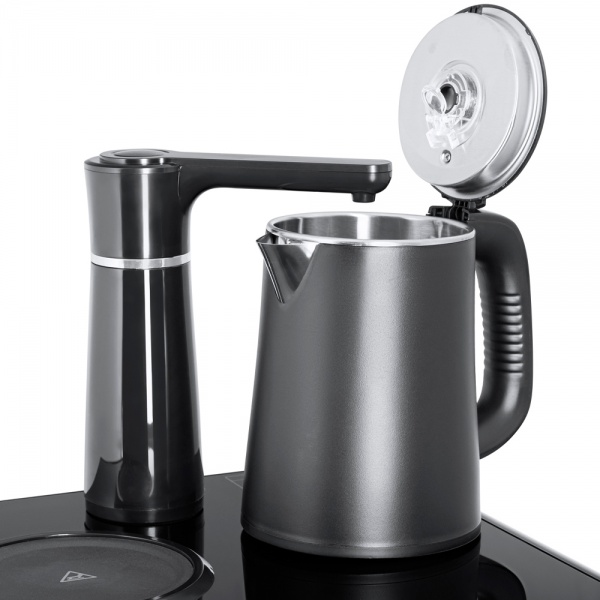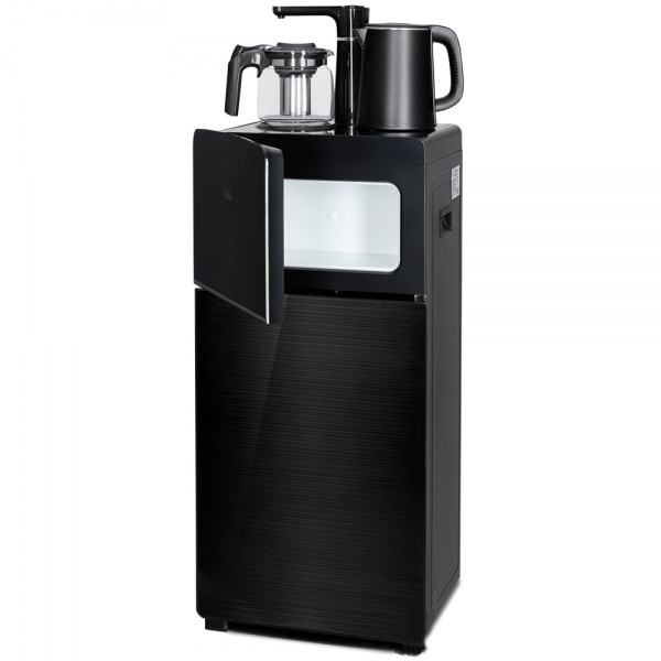 Тиабар Ecotronic TB18-LE black – это напольный кулер с чайным столиком. Нижняя загрузка бутыли. Нагрев воды в чайнике до 100°С. Два чайника: для кипячения (изотермический) и заварочный.