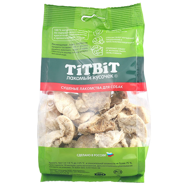Кусочки высушенного говяжьего легкого. Высокое содержание микроэлементов и соединительной ткани дополняет удовольствие собаки от нежного лакомства. Легкие очень вкусны, малокалорийны и замечательно усваиваются организмом. Легкие содержат практически такой же набор витаминов, как и мясо, но зато гораздо менее жирные. Оказывают положительное воздействие на состояние кожи, шерсти и общий обмен веществ. Кусочки очень удобно использовать в качестве поощрения при дрессуре, и просто на прогулках. Для собак всех пород и возрастов. Особенно рекомендуется для собак с неполной зубной формулой и возрастными изменениями зубочелюстного аппарата. Благодаря вкусовым качествам и воздушной структуре является одним из самых любимых лакомств для наших четвероногих друзей.