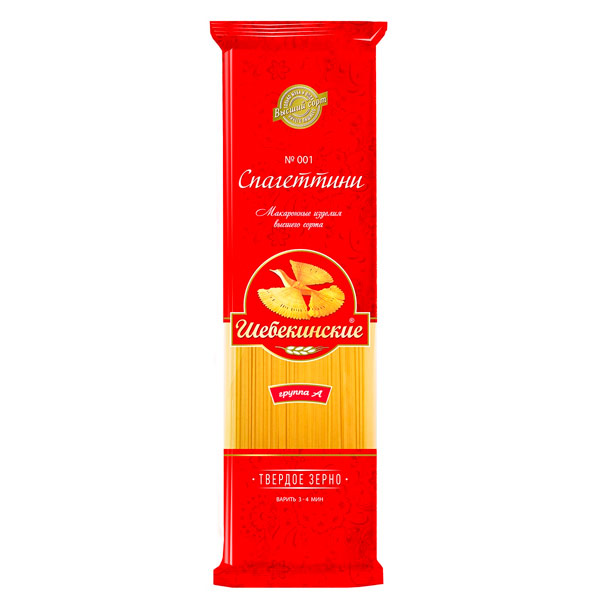 Макароны «Шебекинские» спагетти – это макаронные изделия, которые обладают прекрасным вкусом и высшим качеством, и изготовлены по новейшим технологиям из твёрдого зерна. Спагетти «Шебекинские» составляют достойную конкуренцию западным аналогам, поскольку сделаны максимально приближенно к итальянским образцам. Макароны хороши для приготовления как первых и вторых блюд, так и в сочетании с мясом и морепродуктами. Тонкие «Шебекинские» спагетти идеально подойдут для пасты и запечённых «гнёзд».