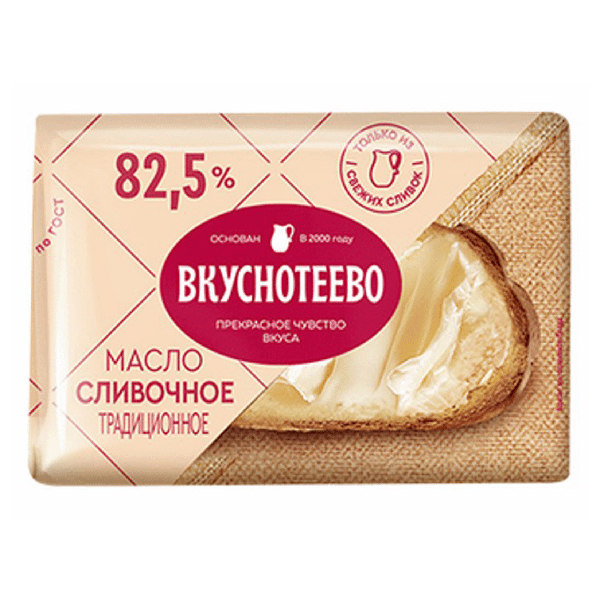 Масло сливочное несолёное Вкуснотеево БЗМЖ 82,5% 180 гр.