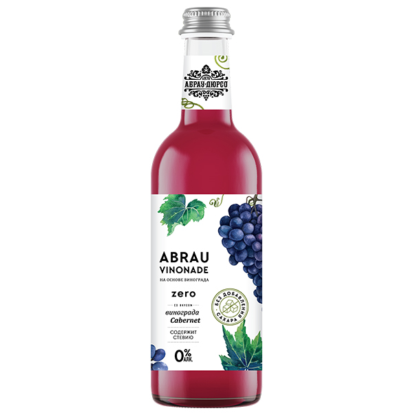 Abrau Vinonade Zero Cabernet — необычный газированный напиток в стекле от «Абрау-Дюрсо», созданный на основе виноградного сока. Винонад с утонченным ароматом черной смородины, ежевики, сливы и вишни с нотами фиалки напоминает любимое красное вино. Лимонад в стекле произведен без добавления алкоголя и сахара — в качестве подсластителя используется стевия.
