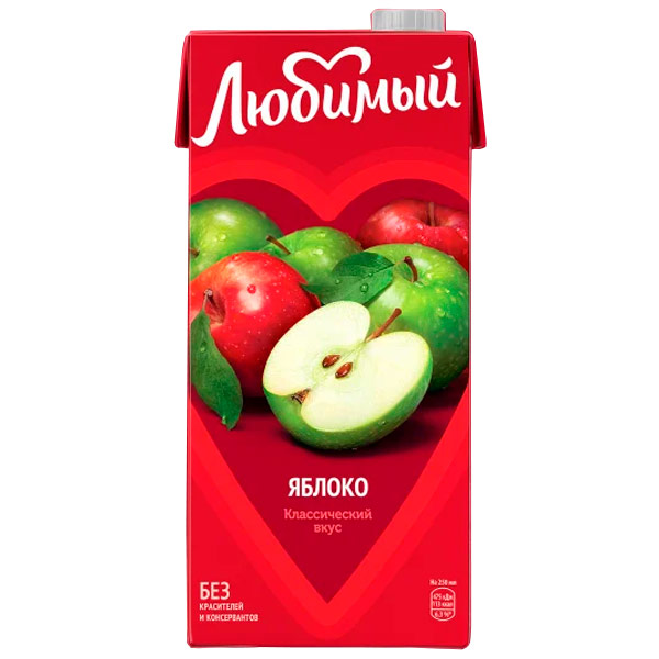Нектар ЛЮБИМЫЙ Яблоко, 0,95 л - вкусный напиток для всей семьи. В нем содержится не менее 50% яблочного пюре и сока, которые наполняют нектар витаминами и полезными веществами. Яблоко – важный источник витамина С, железа и клетчатки, которые поддерживают оптимальное функционирование организма. Не содержит консервантов, красителей и ГМО. Оптимальное сочетание цены и качества делают этот продукт по-настоящему любимым среди покупателей.
