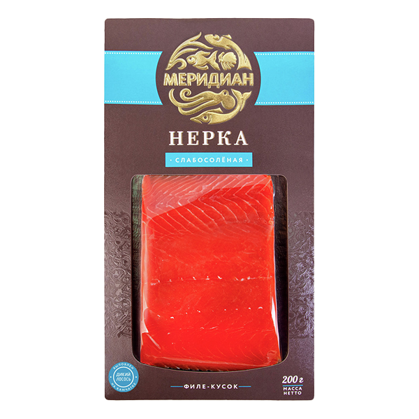 Слабосоленая нерка в вакуумной упаковке. Настоящий дальневосточный деликатес для ценителей. Плотное мясо нерки имеет насыщенный красный цвет и богатый вкус с легким крабовым послевкусием, обусловленным природным рационом рыбы.