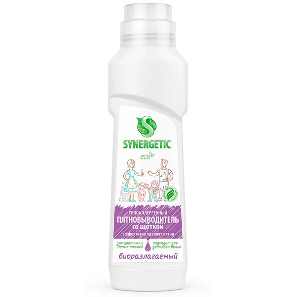 Биоразлагаемый гипоаллергенный универсальный пятновыводитель для предварительной обработки пятен SYNERGETIC придет на помощь в любой ситуации и легко избавится от сложных пятен, а удобная щетка позволит быстро и просто очистить любую ткань.