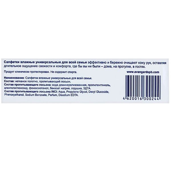 Уничтожает бактерии. Оставляют ощущение свежести. Подходят для всей семьи. Безопасны для чувствительной кожи рук. Продукт клинически протестирован. Не содержит спирта.