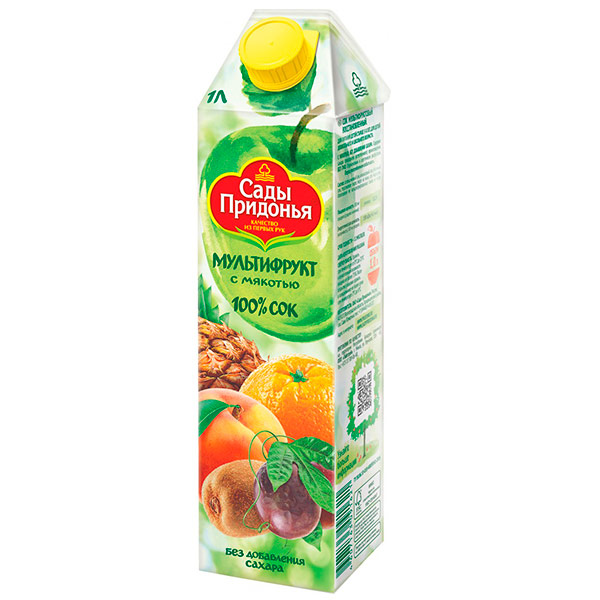 Сок с мякотью «Мультифруктовый» бренда «Сады Придонья» представляет собой микс из яблок, ананасов, киви, апельсинов и персиков. Такое сочетание фруктов придает напитку неповторимый и насыщенный вкус. Продукт производится из натуральных ингредиентов, без красителей и консервантов. Сок богат витаминами и микроэлементами, способствующими укреплению иммунитета и положительно влияющими на организм. Напиток можно употреблять для утоления жажды, а также использовать для маринадов и коктейлей.