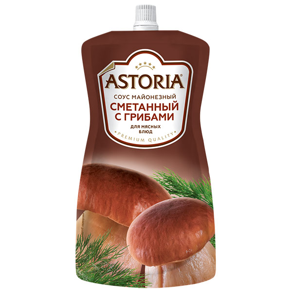 Соус Astoria Сметанный с грибами, – оригинальная приправа, изготовленная из натуральных ингредиентов без добавления генно-модифицированных компонентов и вредных добавок. С ее помощью вы сможете придать любому блюду насыщенный вкус и притягательный сливочно-грибной аромат. Продукт имеет нежную густую консистенцию, а благодаря удобной упаковке с дозатором вы сможете добавлять для заправки необходимое количество соуса. Прекрасно подходит для мясных и рыбных блюд. Может использоваться как заправка к салатам или для приготовления маринадов.