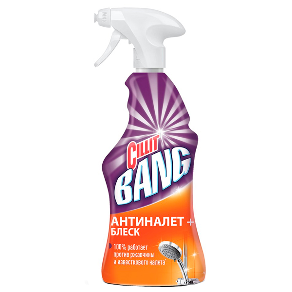 Мощное средство Cillit Bang Антиналет+ Блеск. BANG и грязи как не бывало! Попробуйте по-настоящему мощное средство CILLIT BANG антиНАЛЕТ+БЛЕСК! Оно эффективно удаляет известковый налет, мыльные разводы, ржавчину и въевшуюся грязь! Чистые поверхности блестят как новые! Идеально подходит для уборки ежедневных или стойких загрязненй, для различных материалов (в том числе керамика, акрил) и поверхностей, таких как ванная, душевая кабина, кафельная плитка, подоконники и др.