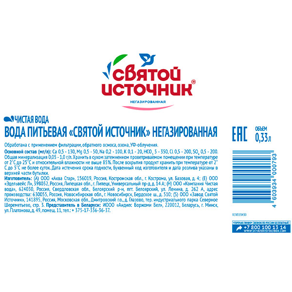 Святой Источник – это питьевая вода из артезианских глубин с оптимальным для человеческого организма составом. Тщательный подход к выбору источников позволяет использовать щадящие, современные методы фильтрации, которые не меняют природную структуру воды, сохраняя в ней всю пользу для человека. В портфеле бренда можно найти воду для любой ситуации в течение дня. Бутылочка объемом 0,33л. поместится даже в небольшой дамской сумочке.