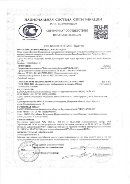 На сегодняшний день система забора воды BAIKALSEA Company — выполнена с соблюдением всех стандартов и соответствующая всем современным требованиям, обеспечивающая неизменность уникального качества глубинной байкальской воды.