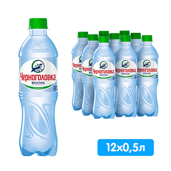 Вода Черноголовка питьевая 0.5 литра, газ, пэт, 12 шт. в уп..