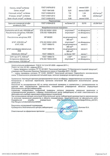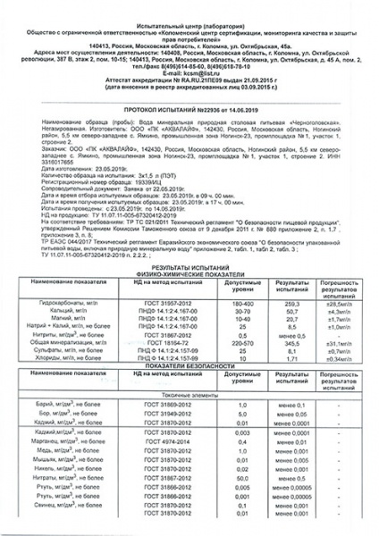Природная питьевая вода Черноголовкая рекомендована для ежедневного потребления ВНИИ экологии человека и гигиена окружающей среды им. Сысина.