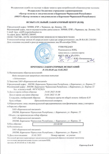 Производство природной столовой воды «Ледниковая» организовано с учетом всех требований органов санэпиднадзора и проходит регулярный контроль в российских органах сертификации и стандартизации