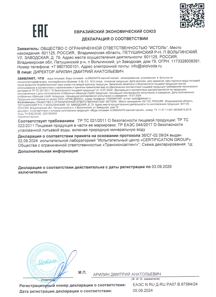 Longavita содержит в себе растворенный кислород в объеме 8-9 мг/л.