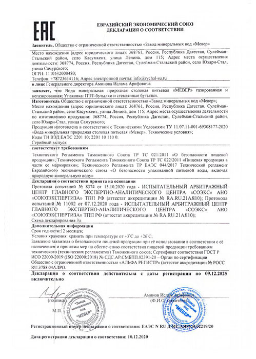 Минеральная вода Mever – это вода из подземного озера в экологически чистых, заповедных горах Дагестана. Именно природное происхождение воды MEVER обеспечило ее уникальный химический состав, наполнило воду полезными для организма человека микроэлементами и минералами. Мы бережно сохранили эти свойства для Вас. Каждый день минеральная вода MEVER готова поддержать Вас в высоком темпе современной жизни, укрепить Ваше самочувствие, тонус и уверенность в своих силах.
