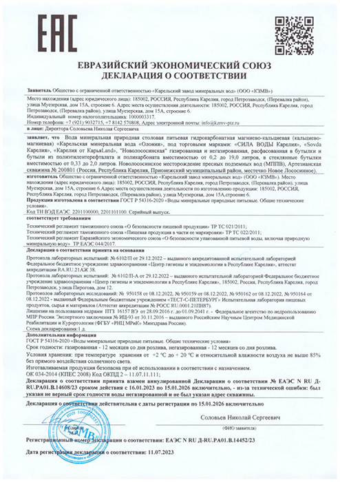 Добывается из чистейших источников Новолососинского месторождения пресных подземных вод в Республике Карелия, артезианская скважина №200801. Вода «Сила воды Карелия» имеет уникальный состав – в ней содержится мало сульфатов и бикарбонатов, благодаря чему она благотворно влияет на организм человека, оздоравливая его. А содержание в ней кальция и кремния способствует здоровому состоянию костей и эластичности кожи. Вода не подвергается химической обработке, проходя природный путь очищения. Не имеет каких-либо противопоказаний и может употребляться без ограничений, а низкий индекс жесткости в 0,6-1,5 мг-экв/л позволит сохранить вашу бытовую технику на долгие годы и избавить вас от проблем с накипью.