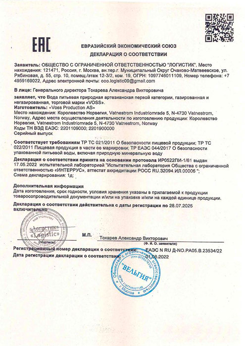 Питьевая вода «Voss» («Восс») рождается в нетронутой дикой местности в источнике, который находится в горах Южной Норвегии и который был сокрыт в течение многих столетий под скалами и льдом. Вода из уникального источника понимается на поверхность земли естественным путём.